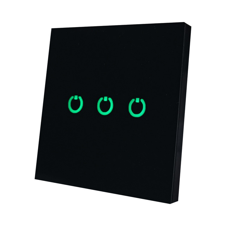 کلید سه پل لمسی با قابلیت تنظیم تایمر 4 زمانه (15و30و60و120 دقیقه ای) به عنوان یک محصول کاربردی و لوکس می تواند مورد استفاده قرار بگیرید.صفحه لمسی این کلید از نوع خازنی با حساسیت مناسب می باشد که می تواند از روی یک پلکسی 3میلی متری عملکرد کاملا مناسبی را داشته باشد.همچین دارای نوربکلایت به منظور استفاده آسانتر در محیط های تاریک می باشد به طوری که هنگام خاموش بودن خروجی ها به رنگ قرمز درآمده و در صورت روشن شدن به رنگ سبز تغییر خواهد کرد.جنس رویه این کلید پلکسی 2میلیمتری با کیفیت میباشد.هر خروجی این محصول قابلیت تحمل توان 700 وات را دارا میباشد.برای نصب این محصول از 2 عدد پیچ استفاده خواهد شد.ابعاد استاندراد محصول باعث میشود تا به راحتی در داخل قوطی کلید های مربعی شکل با ابعاد داخلی 6در6در4 نصب شودهمچنین تمامی ملزومات نصب آسان و راهنمای کامل در کنار محصول موجود میباشد.