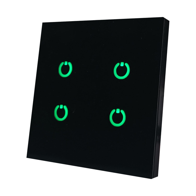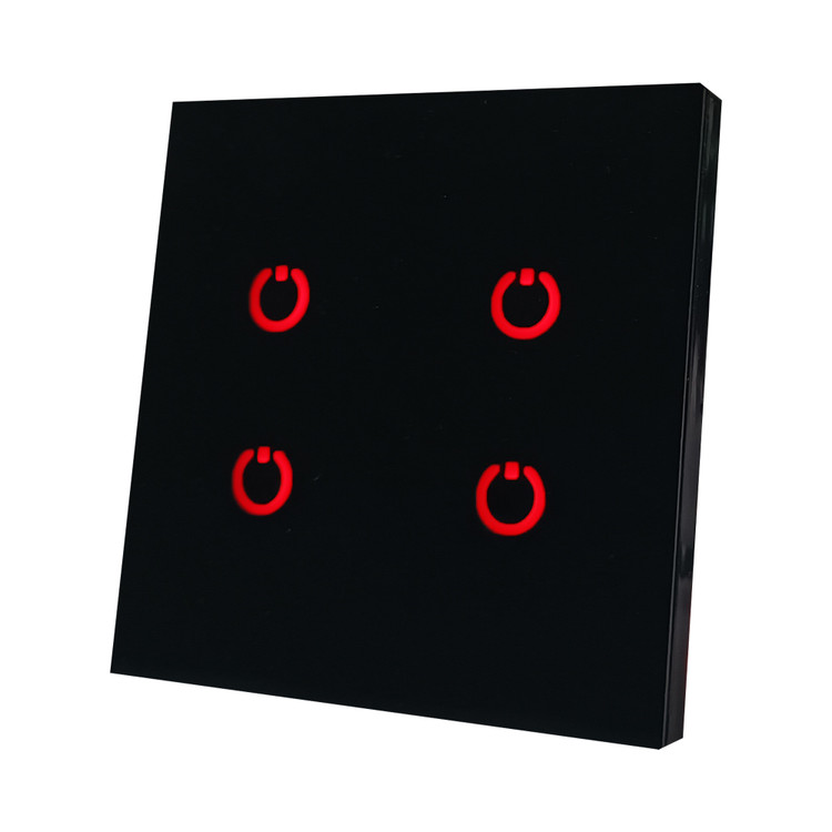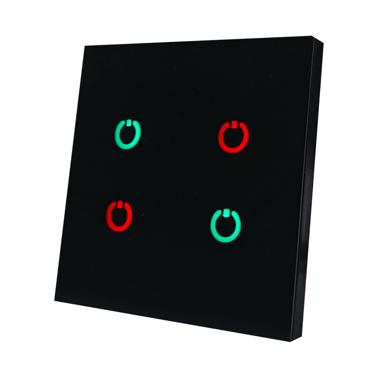 کلید چهار پل لمسی با قابلیت تنظیم تایمر 4 زمانه (15و30و60و120 دقیقه ای) به عنوان یک محصول کاربردی و لوکس می تواند مورد استفاده قرار بگیرید.صفحه لمسی این کلید از نوع خازنی با حساسیت مناسب می باشد که می تواند از روی یک پلکسی 3میلی متری عملکرد کاملا مناسبی را داشته باشد.همچین دارای نوربکلایت به منظور استفاده آسانتر در محیط های تاریک می باشد به طوری که هنگام خاموش بودن خروجی ها به رنگ قرمز درآمده و در صورت روشن شدن به رنگ سبز تغییر خواهد کرد.جنس رویه این کلید پلکسی 2میلیمتری با کیفیت میباشد.هر خروجی این محصول قابلیت تحمل توان 700 وات را دارا میباشد.برای نصب این محصول از 2 عدد پیچ استفاده خواهد شد.ابعاد استاندراد محصول باعث میشود تا به راحتی در داخل قوطی کلید های مربعی شکل با ابعاد داخلی 6در6در4 نصب شود.همچنین تمامی ملزومات نصب آسان و راهنمای کامل در کنار محصول موجود میباشد.